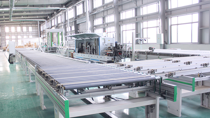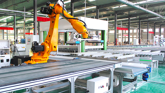 品脈數(shù)控定制家具工業(yè)4.0主要是以無人化工廠為主,打造工業(yè)4.0的生產(chǎn)線,把開料、封邊、鉆孔、分揀、包裝等流程一體化,從而實(shí)現(xiàn)無人式的工廠生產(chǎn)模式。整套定制家具工業(yè)4.0硬件部分涵蓋開料設(shè)備、多軸搬運(yùn)機(jī)器人、封邊回轉(zhuǎn)線系統(tǒng)、動(dòng)力傳輸線、龍門抓料機(jī)、六面鉆打孔設(shè)備、自動(dòng)分揀系統(tǒng)等通過總控系統(tǒng)與智能軟件控制實(shí)現(xiàn)自動(dòng)化生產(chǎn)。