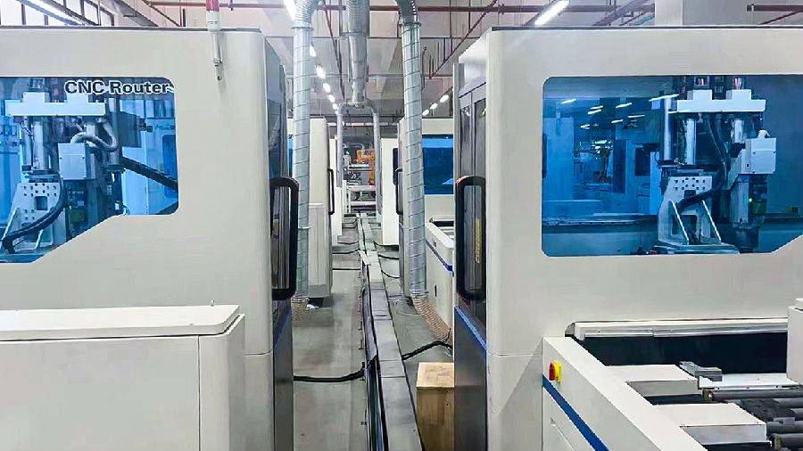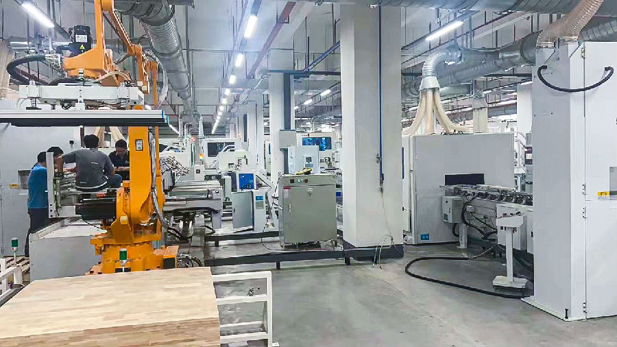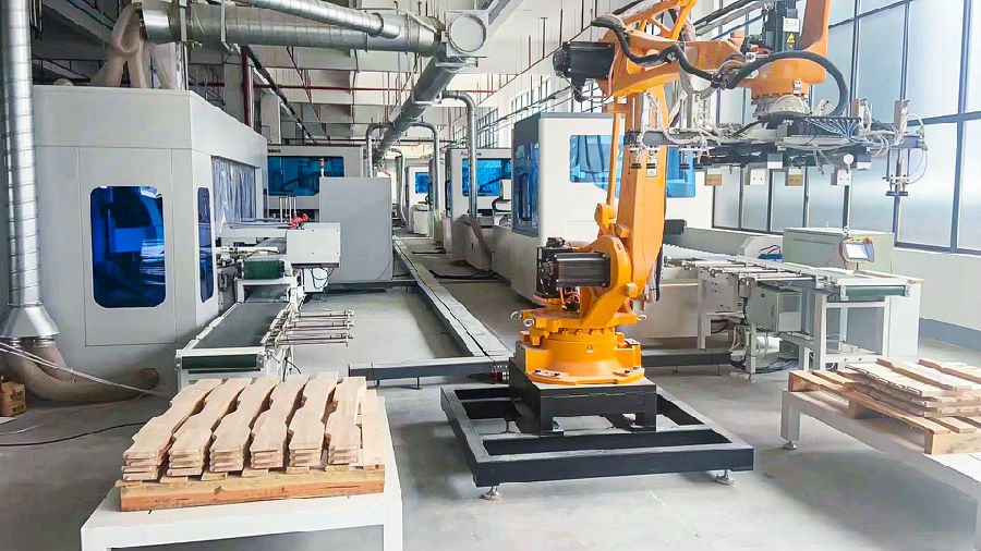品脈數(shù)控實木家具生產(chǎn)流水線客戶工廠實拍,完成實木家具多種工件的銑型、開槽、鉆孔等工藝!