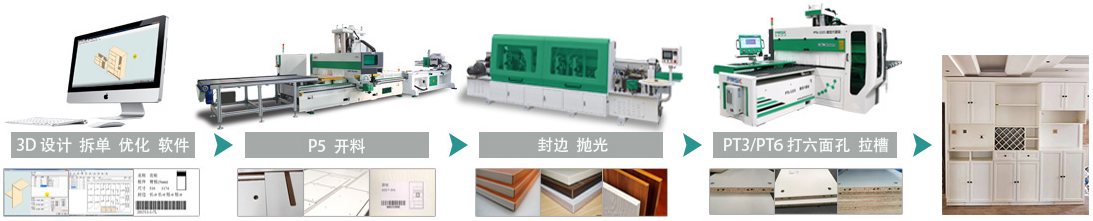 4. 本型大板套裁CNC,可承受高強度滿負(fù)荷運行,配套自動貼標(biāo)機(jī)進(jìn)行大板套裁下料,適合組建板式家具智能全自動生產(chǎn)流水線。
