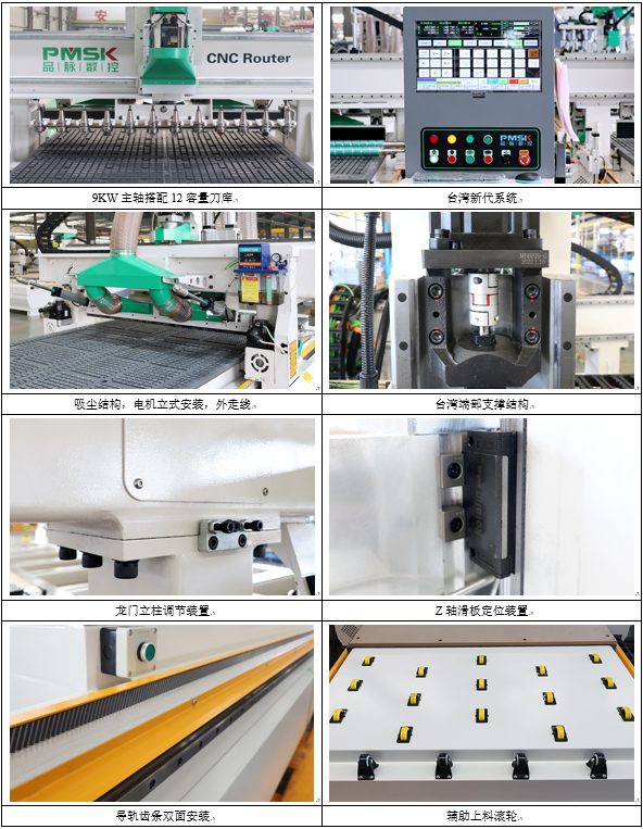 ◆ 9.0KW大功率風(fēng)冷換刀主軸,適合柜體長(zhǎng)時(shí)間高速切割下料、以及各種造型的雕銑加工。