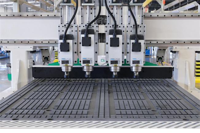 GETE-M4四工序開料機(jī),主要用于板式家具的快速鉆孔、開槽與切割下料加工,可加工常見的板式家具二合一、三合一連接件的安裝孔,具備加工部分種類隱形連接件的功能;操作簡(jiǎn)單,尤其適合定制家具生產(chǎn)加工;一般兩個(gè)小功率主軸用于鉆孔,兩個(gè)大功率主軸兼具銑孔、開槽與切割下料,四個(gè)主軸均可攜帶刀具進(jìn)行門板雕刻加工;本機(jī)適合多元化復(fù)雜性產(chǎn)品加工或多樣加工,用途廣泛:可一次性下料、鉆孔、切割、倒邊、雕刻等。