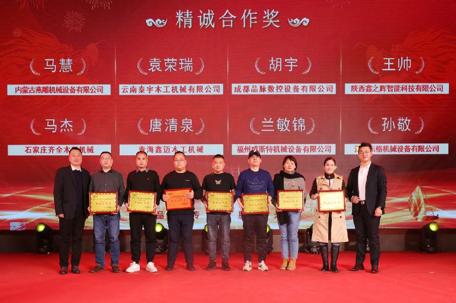 中國(guó)木材與木制品流通協(xié)會(huì)全屋定制分會(huì)執(zhí)行秘書(shū)長(zhǎng)、山東省家具協(xié)會(huì)定制家居專委會(huì)秘書(shū)長(zhǎng)徐寶傳,山東省家具協(xié)會(huì)副秘書(shū)長(zhǎng)王騰,會(huì)員部副主任呂磊頒獎(jiǎng)。