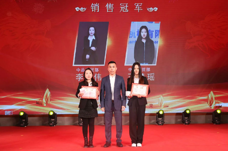 傅總為國(guó)內(nèi)、國(guó)外銷售部冠軍頒獎(jiǎng)