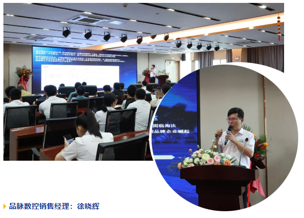 品脈數(shù)控銷售部經(jīng)理徐曉輝帶來了《應(yīng)對新形勢,激發(fā)新思路,建立新優(yōu)勢-品脈數(shù)控自動化助力家具企業(yè)提升競爭力》的精彩分享,詳細(xì)闡述了PT5系列設(shè)備以及單元體連線在提升生產(chǎn)效率、降低生產(chǎn)成本方面的顯著優(yōu)勢,通過實現(xiàn)生產(chǎn)流程的自動化與智能化提高家具企業(yè)競爭力。