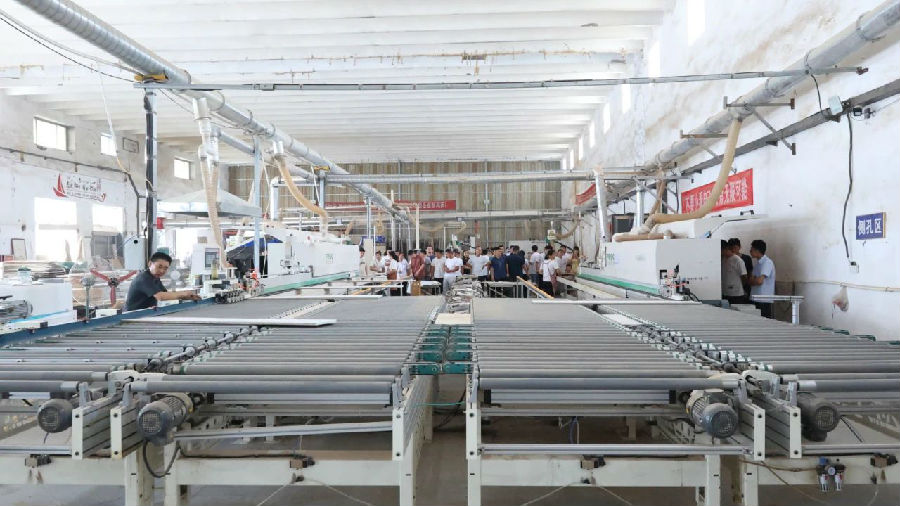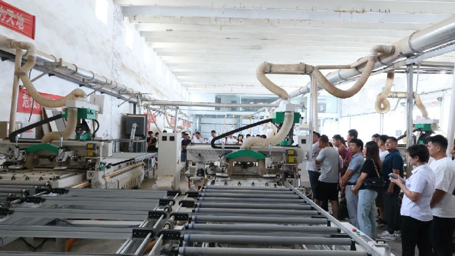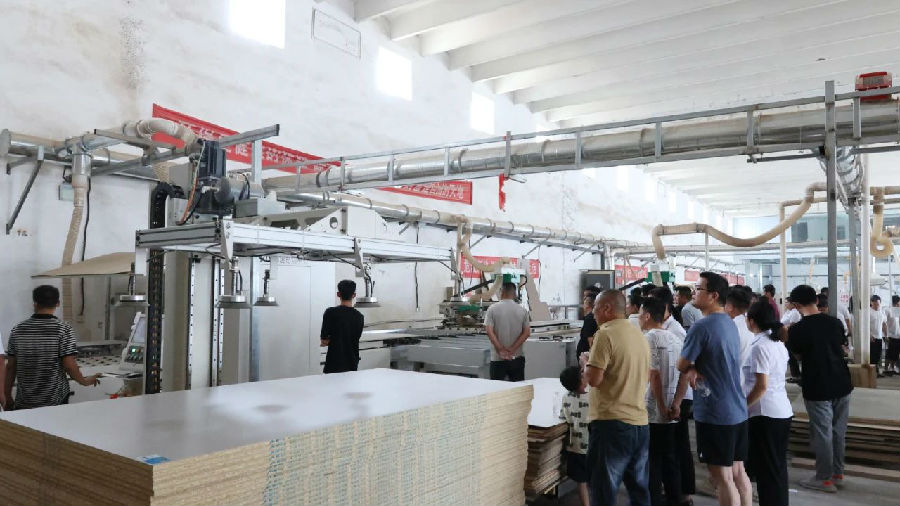 為了讓嘉賓切身體會PT5及自動化技術(shù)的優(yōu)勢,實地參觀了和益宅配及每屋美家兩家家具企業(yè)的生產(chǎn)現(xiàn)場。讓嘉賓們親身感受品脈數(shù)控高速鉆切中心及單元連線為板式家具廠降本增效,產(chǎn)能升級帶來的實際應(yīng)用效果。